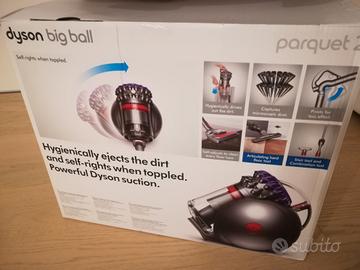 Aspirapolvere a traino Dyson Big Ball Parquet 2. Aspirazione potente su tutte le superfici. Si risolleva in automatico quando viene rovesciato. Sistema integrale di filtraggio avanzato. Svuotamento igienico del contenitore. Peso 8kg. L'aspirapolvere è nuovo, venduto con tutti gli accessori nella confezione originale. Acquistato a gennaio 2024, l'aspirapolvere è in garanzia