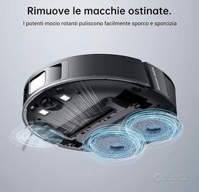 Dreame L10s Pro Robot 2in1 Aspirapolvere e Lavapavimenti, Moci Rotanti, Rilevamento ostacoli 3D, Mappatura Multipiano, Aspirazione Potente 5300Pa Pavimenti Duri Tappeti, Peli Animali, WiFi/APP/Alexa. Dreame L10s Pro è una combinazione perfetta delle più diffuse tecnologie di pulizia robotica, un Robot aspirapolvere completamente automatizzato che aspira e pulisce i pavimenti. Questo modello all’avanguardia integra una navigazione avanzata e personalizzabile con rilevazione ostacoli e telecamera basata sull’intelligenza artificiale per offrire prestazioni di pulizia impressionanti e a mani libere. [Moci Rotanti pressurizzato] Due resistenti panni lavapavimenti ruotano ad alta velocità per rimuovere le macchie più ostinate. Il serbatoio dell'acqua rimovibile da 190 ml garantisce una pulizia accurata e pratica delle superfici dure. La potenza di aspirazione di 5300pa gli consente di penetrare in profondità e aspira con potenza per rimuovere peli, sporco, polvere e residui per una pulizia ottimale dei tappeti. Perfetto soprattutto per famiglie con animali domestici.