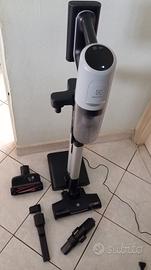 aspirapolvere con accessori , spazzola multifunzione motorizzata lancia rigida e lancia regolabile con spazzola . in velocità automatica la batteria dura 14 minuti . la spazzola pavimenti è pari al nuovo mai. usata.