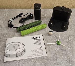 Aspirapolvere iRobot Roomba e5, usato ma tenuto molto bene come si vede dalle foto, completo di ogni accessorio originale e del libretto di istruzioni, spazzole e ruota nuovi, contenitore per la polvere lavabile sotto l'acqua, ritorna in automatico alla base quando è scarico, tutto configurabile via app.