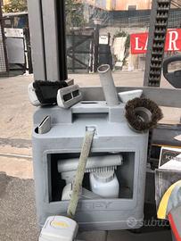 Aspirapolvere professionale correttamente funzionante. Multifunzionale con ad esempio vari formati di spazzole adatte per pulire anche tappeti e divani inclusi alcuni sacchetti di ricambio.