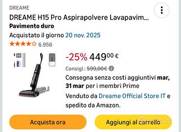 Causa regalo di categoria superiore vendo Dreame H15 pro. Completo di tutti gli accessori originali, ancora nell’imballo originale. Cedo con regolare fattura. Disponibile a qualsiasi prova. Contattare solo se realmente interessati.