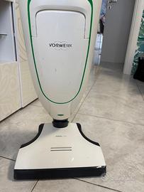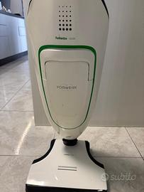 Scopa folletto con pezzo multifunzione, che funge sia da aspiratappeti e aspirapolvere sul pavimento con tre velocità.