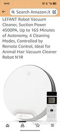 LEFANT Robot Vacuum Cleaner, Suction Power 4500PA, Up to 165 Minutes of Autonomy, 4 Cleaning Modes, Controlled by Remote Control, Ideal for Animal Hair Vacuum Cleaner Robot N1R. Comprato da Amazon. fantastico. vendo per comprare un upgrade.vendo con scatola telecomando a Roma scambio a mano.