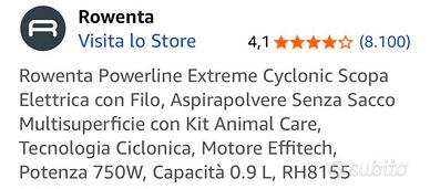 Aspirapolvere con filo,Rowenta Powerline Extreme Cyclonic, modello RH8155 ,aspirapolvere senza sacco, ritiro zona ponticelli ,non spedisco