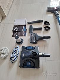 Vendo aspirapolvere Rowenta x force 11.60 per passaggio a modelo piu potente. L'aspirapolvere funziona e ha tutti gli accessori inclusi, però la spazzola inferiore non viene piu alimentata causa contatti rovinati, ideale per pezzi di ricambio o per uso senza accessori. La batteria dura circa 20 minuti su max e 40 su eco, sul boost poco meno di 5 minuti. Può essere utile se qualcuno lo sa riparare o per ricambi, sennò usato normalmente sapendo che non va la spazzola. Inclusa anche la scatola e l'accessorio che aspira e lava contemporaneamente il quale non necessita di alimentazione non avendo spazzole. Prezzo poco trattabile.