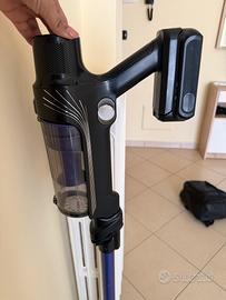 Io l’ho acquistata ad ottobre, mi sono trovata abbastanza bene ma purtroppo devo venderla perché avendo più di un animale in casa mi sono accorta che la potenza non è abbastanza, perché la passavo più volte al giorno ed a volte ritrovandomi a passare più volte negli stessi punti per aspirare i peli di animali la batteria si scaricava prima che potessi finire di pulire casa. Inoltre non mi aspirava le briciole della sabbietta dei gatti che magari finivano a terra, le rigettava, quindi non la consiglio molto a chi ha animali in casa o almeno più di uno. L’ho portata anche a riparare pensando che ci fosse qualcosa che non andava ma mi è stato detto che funziona perfettamente e che non è un’aspirapolvere molto adatta per chi ha tanti animali in casa ma di comprare qualcosa di più specifico e forte, ecco perché la vendo, altrimenti per il resto funziona benissimo, aspira tutto. Tenuta in ottime condizioni, utilizzata poco, presenta qualche graffio solo nella parte inferiore. Pagata 130€ su Amazon.