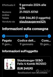 Acquistato il 15 gennaio 2024 a 266,80 euro come da screenshot allegato, vendo a 110 euro !!! la garanzia scade il 15 gennaio 2026