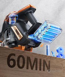 Aspirapolvere Senza Fili 45KPA/550W/60Mins Aspirapolvere Verticale Potente Aspira Briciole Antigroviglio con Grande Capacità Scopa Elettrica Senza Fili per Pavimenti/Tappeti/Peli di Animali Domestici