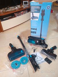 aspirapolvere ciclonica due in uno con spazzala per pavimento e manuale per divano tavola ecc inserto per lavare a secco o umido nuova usata per attestare il funzionamento completa di tutto anche delle plastiche scatola nuova .