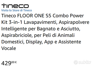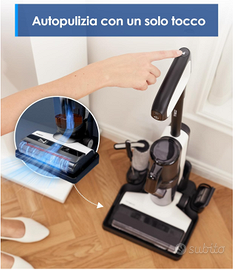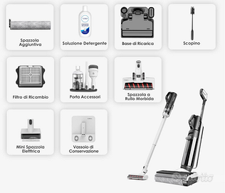 VENDO X PASSAGGIO A MODELLO NUOVO Per chi ha gatti è indispensabile. Tutti i pezzi sono estraibili. Facile e veloce da usare, pratica e veramente utile. Lascia il pavimento quasi asciutto, serbatoio per acqua pulita e sporca. L'insieme degli accessori e la semplicità di collegamento fra loro consente di avere più elettrodomestici in uno. Ha il ciclo di pulizia a fine utilizzo, app di gestione, buona autonomia e ricarica sufficientemente veloce. Il pavimento della cucina si pulisce in un baleno e consente tutte quelle pulizie che necessitavano di secchio, mocio ecc. in pochissimo tempo. La spazzola piccola agisce brillantemente su cuscini, divano, letti ecc. La spazzola a secco per pavimenti pulisce egregiamente i tappeti, basta andare in po' spediti altrimenti si disattiva. Lavapavimenti testato su minestra accidentalmente versata sul pavimento. Consiglio di fare asciugare il serbatoio dell'acqua sporca prima di reinserirlo.