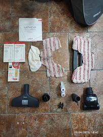 vendo potente aspirapolvere marca Polti trasportabile con rotelle e cavo elettricità arrotolabile a scomparsa con funzione vapore con potente caldaia per pulizia di tutte le superfici, ideale per peli di animali, tutte le info nelle foto allegate. usato ma funzionante e in buone condizioni. dotato di libretto istruzioni, spazzola pavimenti con 2 panni, ugello vapore, spazzola divani e imbottiti, spazzola per vetri con panno, 3 confezioni di anticalcare con 20 flaconcini ciascuno, ecc.