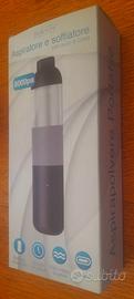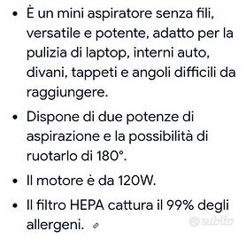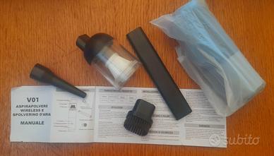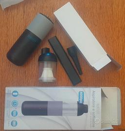 Potente aspiratore e soffiatore(2 in 1)portatile Believery, compatto e senza fili, per uso domestico(divani, tappeti etc.), per l'auto e per dispositivi elettronici, ideale per tastiere PC e piccoli spazi, rimuove polvere, peli, briciole, grazie anche al soffiatore potente. Batteria lunga durata. Dimensioni ridotte(cm.26.3x11.5x6) e leggerissimo(circa 400grammi), mai usato. Completo di scatola e accessori, con filtro lavabile e riutilizzabile.