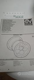 aspiratore elicoidale a media pressione intubato vorticel mpc vortice di acciaio con ventola arancione, con pannello di accensione e di regolazione e libretto di istruzioni di entrambi