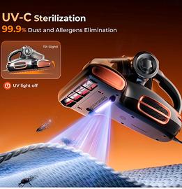 JIGOO T600 Aspiratore per Materassi con luce UV e Vibrazione, 700W 15kpa Battimaterasso Antiacaro, Rimuove il 99,9%, Indicatore LED, 60 ℃ 5s, Riscaldamento Rapido, 72 dB Design Silenzioso - usato solo 1 volta.