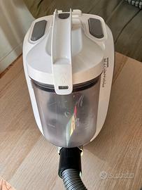 Presenti accessori mai utilizzati, spazzola per tessili e bocchetta con setole.