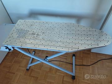 Asse da Stiro professionale . un'asse riscaldata (si vede il cavo di alimentazione e la struttura forata del piano). Aiuta a mantenere il capo fermo sul piano e ad asciugare l'umidità del vapore, evitando che il copriasse si bagni troppo. Si notano segni derivante dal tempo ma è funzionante perfettamente. PREZZO TRATTABILE
