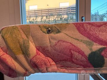 Il telo ha un piccolissimo strappo sulla parte destra, visibile in foto, ma visto che è ancora utilizzabile sarebbe un peccato buttarlo, in ogni caso il telo superiore è facilmente sostituibile(noi lo abbiamo fatto ogni paio d’anni), e si può tendere per bene con le viti come visibile in foto.