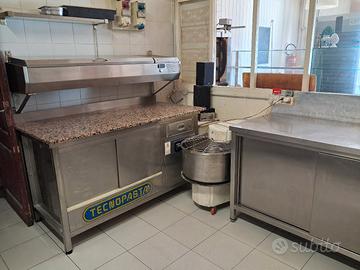 Vendo attrezzatura completa per pizzeria, tutto funzionante e momentaneamente in uso, quindi visibile con prova. A chi è interessato invio foto e video. Forno 2 camere elettrico, impastatrice 2 velocita grande, 2 frigoriferi professionali, un banco pizzeria con vetrina refrigerata per alimenti 2 banchi lavoro, rastrelliere e teglie, cassetti, 2 fuochi a gas professionali, cappa, lavandino professionale grande a una vasca, pensile in acciaio, friggitrice da banco professionale, e tante altre cose che non elenco.