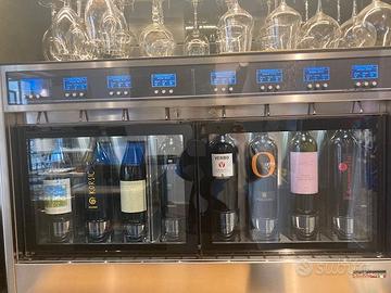 1WINE EMOTION macchina per il mantenimento e la mescita di vino usata solo 6 mesi.dDispenser sia in modalità “Retrobanco” che modaltà “Self Service”.L’attivazione avviene tramite smart card (chip o RFID) oppure tramite Barcode.TEMPERATURE DI SERVIZIO Due zone completamente indipendenti con temperature impostabili dai 6°C ai 22°C DOSI fino a tre dosi per bottiglia selezionabili da tasti meccanici di alta qualità. INTEGR. SOFTWARE Conn. tra moduli e software attraverso cavo LAN o WI/FI* tramite protocollo TCP/IP0.Sistema di sollevamento bottiglie tramite pistoni pneumatici. Moderno sistema di refrigerazione professionale no-frost completamente silenzioso. WINE CARD Sistema con carta Chip o RFID. GAS Azoto o Argon alimentare (bombola o generatore non Inclusi).ILLUMINAZIONE LED Sistema di illuminazione intelligente a led con risparmio energetico.Led RGB per infinite combinazioni di colori. SERRATURA ELETTRONICA VETRI ANTI CONDENSA