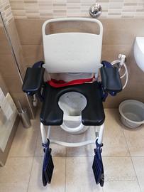 Sollevatore elettrico professionale in alluminio Chinesport completo di imbragatura igienica con batteria di scorta e caricabatterie portatile. Tutto in ottimo stato. Sedia comoda in alluminio Chinesport modello Frankfurt con ruote piroettanti e freni per uso doccia e WC. A corredo cintura di sicurezza e poggia braccia
