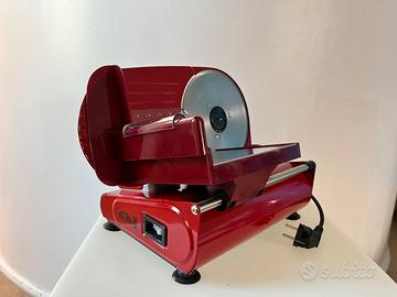 Basamento in alluminio fuso laccato. La lama, in acciaio temprato e movimentata con trasmissione a cinghia, è facilmente pulibile grazie ad un sistema brevettato che consente di smontarla agevolmente.