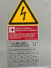 Trasformatore Fotovoltaico TRFTV 400V 90KVA C.EL.MEC.SUD Made in Italy Matricola 90/01/10 Ampere 130 370Kg 50/60Hz
