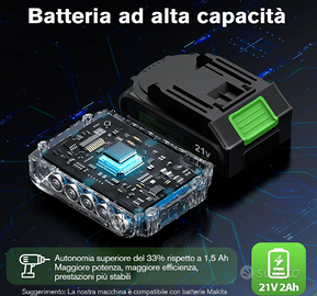 Due batterie da 2Ah per un lavoro continuo: Con due batterie intercambiabili e un caricabatterie inclusi, sei pronto per affrontare progetti più lunghi senza preoccuparti dell’autonomia. L'avvitatore a percussione Ginor con connettore Ma-kita è compatibile con le batterie esistenti della serie Makita.