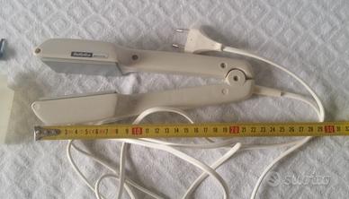 Piastra elettronica a vapore per capelli BABYLISS Electronic originale; la scatola e' in francese. L'oggetto ha circa 35 anni, e' funzionante. Peso dell'oggetto comprensivo di scatola: 670 grammi. L'oggetto è stato utilizzato; le sue condizioni sono ottime, nessun difetto o imperfezione grave; visionare le immagini inserite, anche per le dimensioni e le caratteristiche tecniche dell'oggetto.