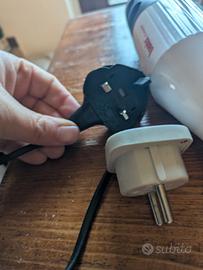 Asta lunga 24 cm, struttura completamente in acciaio inox, smontabile, facile da lavare, motore potente da 300W. Due velocità: 18.000 / 22.000 giri al minuto. La spina è inglese ma viene fornito con adattatore per presa italiana. Acquistato 3 mesi fa e usato solo 4/5 volte.