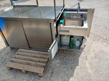 Vendo banco interamente acciaio inox,lavabo acqua calda,tettino rimovibile e crepiera professionale perfettamente funzionante Per informazioni 3338051459 NO perditempo NO vendibile separatamente Poco trattabile