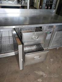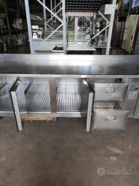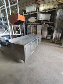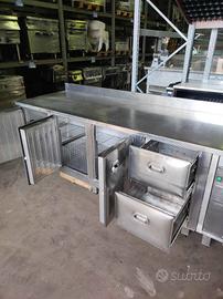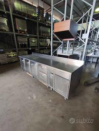 Vendiamo bancone in acciaio inox AISI 304 in perfetto stato revisionato, tre porte e due cassetti, temperatura positiva -2 + 8 °c. Alimentazione 220 v monofase. Misure: 280 cm larghezza 80 cm profondità 85 cm altezza Maninox attrezzature professionali per la ristorazione. Cell 3516567648