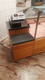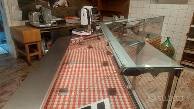 vendo per cessata attività banco frigo completo compreso di motore esterno.. smontaggio e riassemblaggio a carico del cliente.. misure lunghezza parte dritta 240 parte laterale 175 cubo porta cassa 50 profondità 120.. si applica fattura.. al prezzo va aggiunta l Iva al 22%.. prezzo trattabile..