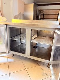 Struttura robusta in inox, facile da pulire, con ante capienti e piano superiore ampio e comodo per la preparazione, presenta comunque segni di utilizzo.