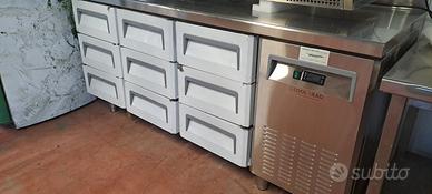Banco frigo 9 cassetti marca COOL HEAD, nuovo, con saladette porta ingredienti.