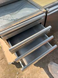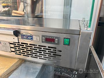 Banco pizza refrigerato in acciaio inox “SaCar” – Dim.cm 200x80 - con 2 ante e 7 cassetti - incl. vetrina refrigerata.