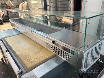 Banco pizza refrigerato in acciaio inox “SaCar” – Dim.cm 200x80 - con 2 ante e 7 cassetti - incl. vetrina refrigerata.