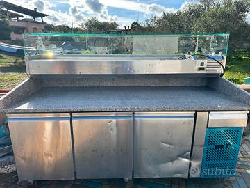 banco pizzeria con vetrina per ingredienti funzionante usato un anno ( bozza su uno sportello dovuto al carico del banco ) info solo contato tel 3409808293 no e mail