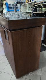 Dotata di triplo rubinetto in acciaio inox con leve, vassoio raccogligocce integrato e struttura robusta in legno.