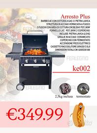 Barbecue a Gas o pietra Lavica, con struttura in acciaio e fornello laterale.