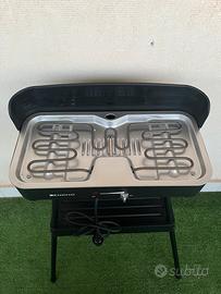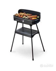 Barbecue elettrico enkho con piastra ILAG antiaderente e rimovibile, per garantire una facile pulizia, 4 supporti antiscivolo e ripiano intermedio. Potenza: 2200W. Misure prodotto: 60x44x h82 cm.