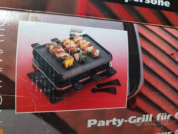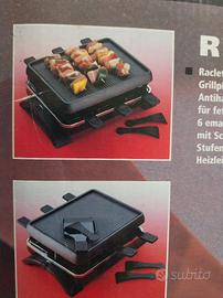 GRIGLIA DA TAVOLA e VASCHETTINE RACLETTE, COMPLETA, CREDO USATA UNA VOLTA (MA FORSE NEPPURE), ANCORA CON TUTTI I SUOI IMBALLI, BUSTINE DI CELLOPHANE E QUANT'ALTRO SERVA; SOLO LA SCATOLA ESTERNA NON E' PERFETTA