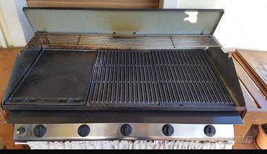 Barbecue Dolcevita, dual gas metano/bombola, 5 fuochi, accensione manuale dotato di piastra di ricambio. Mobile in legno.