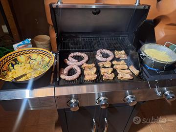 Arsard Barbecue a Gas Professionale XXL Con 4 Fuochi Multifunzione Da 13 KW, Completo Di Bruciatore Laterale, Coperchio, Termometro, Griglia In Ghisa, Ruote E Struttura In Acciaio Inox