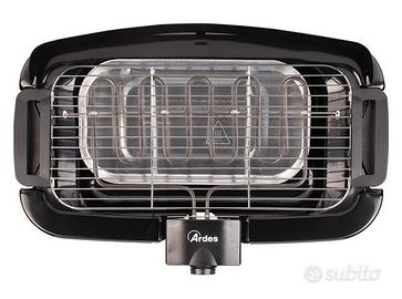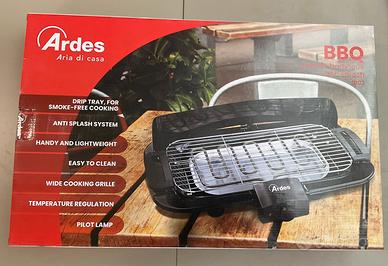 Barbecue elettrico leggero e maneggevole ARDES SECONDA SCELTA , è dotato di griglia removibile extra large in acciaio cromato da 22×45 cm. Paratia di protezione anti schizzi. Ampia superficie di cottura. Vaschetta per l’acqua, anti-fumo. Griglia e resistenza removibili e lavabili. Regolazione della temperatura. Spia di funzionamento. Potenza 2000W.