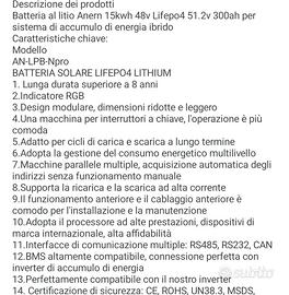 Batteria al litio 15kwh 48v Lifepo4 51.2v 300ah per sistema di accumulo di energia ibrido.