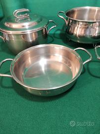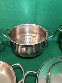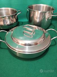 batteria di pentole in acciaio inox 18/10 5 pentole più due coperchi marca frabosch fondo termodifusore grandi formati usata poco pari al nuovo garantita