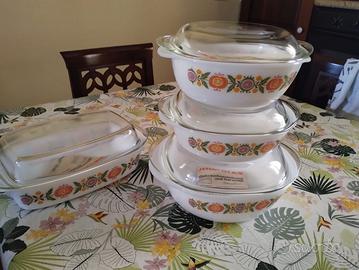 vendo batteria da forno in vetro temperato. 1) diametro interno 23x23 altezza con coperchio 13 2) diametro interno 9x9 altezza con coperchio 10 3) diametro interno 26x17 altezza con coperchio 12 4) diametro interno 19 x19.5 altezza con coperchio 11 senza scatole. nuove