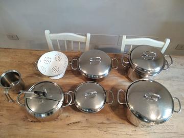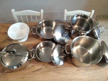Vendo causa passaggio ad induzione,batteria di pentole da 7 PZ in acciaio inox composta da