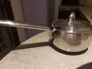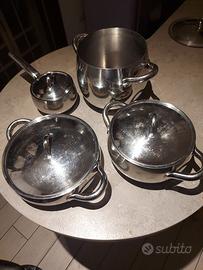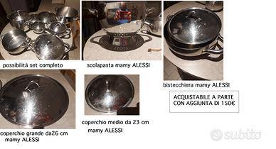 SET BASE SG100S7 composto da 7 pezzi: -1 casseruola (brodo/latte) da 12,5 cm con coperchio -1 pentola grande da 6 litri (diametro coperchio da 19 cm) -1 pentola media con coperchio (intercambiabile con pentola da 6 litri, è lo stesso) 19 cm 1 bistecchiera con coperchio da 22,5 cm €.... accetto offerte da valutare POSSIBILITà DI AVERE IL SET COMPLETO modelli successivi che comprendono: -1 scolapasta diam. 20 cm -1 penstolino piccolo con coperchio da 15 cm - più 2 coperchi aggiuntivi uno da 23 cm e l'altro da 26 cm (per padelle non incluse) con acquisto del SET COMPLETO DI tutti i 12 pezzi avrete in omaggio il bollilatte piccolo da 33cl sempre della collezione mamy tutto il set è di valore sia per produzione di design che qualità dell'acciaio inox. e del valore da nuovo di oltre 450 euro. non indico prezzo ma accetto offerte da valutare, base di partenza 250 euro